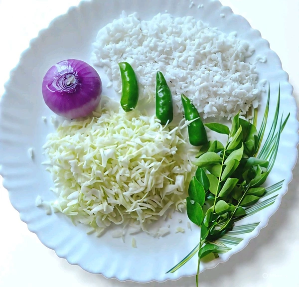 തേങ്ങ (ചിരകിയത്) , സവോള, പച്ചമുളക്