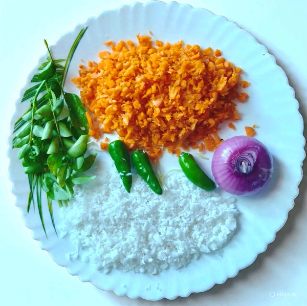 തേങ്ങ (ചിരകിയത്) , സവോള, പച്ചമുളക്
